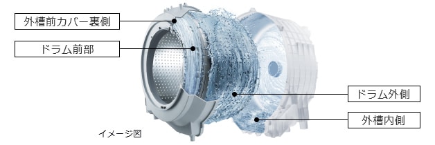 Máy tự động loại bỏ các vết bã nhờn, cặn bột giặt, vi khuẩn, bào tử nấm mốc đen, v.v. có xu hướng bám vào các khu vực không nhìn thấy được như mặt sau của lồng giặt, đồng thời khử trùng và ngăn chặn nấm mốc đen.