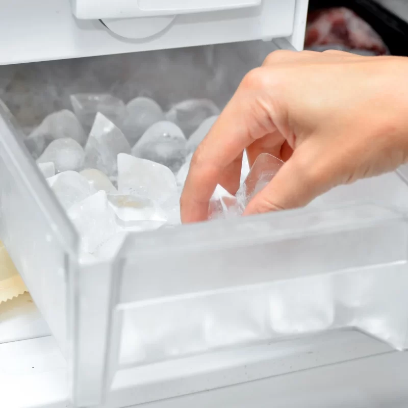 Đá luôn được bảo quản đúng cách trong ngăn đá nhờ hệ thống ngăn đá rơi tự động, giúp tránh tình trạng đá bị rơi ra ngoài hoặc dính vào nhau. Điều này không chỉ giữ cho đá luôn sạch sẽ mà còn đảm bảo an toàn cho người sử dụng.