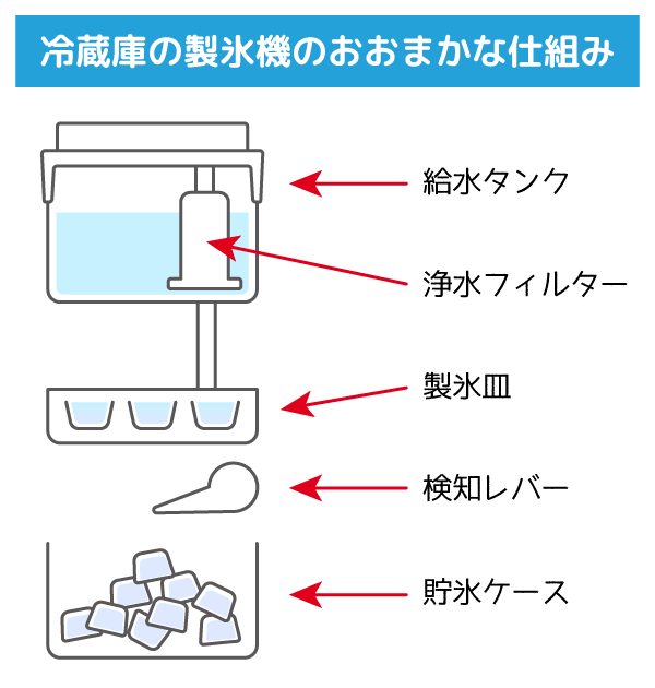 Hệ thống ngăn đá rơi tự động trong tủ lạnh nội địa Nhật Bản bao gồm các thành phần chính sau: