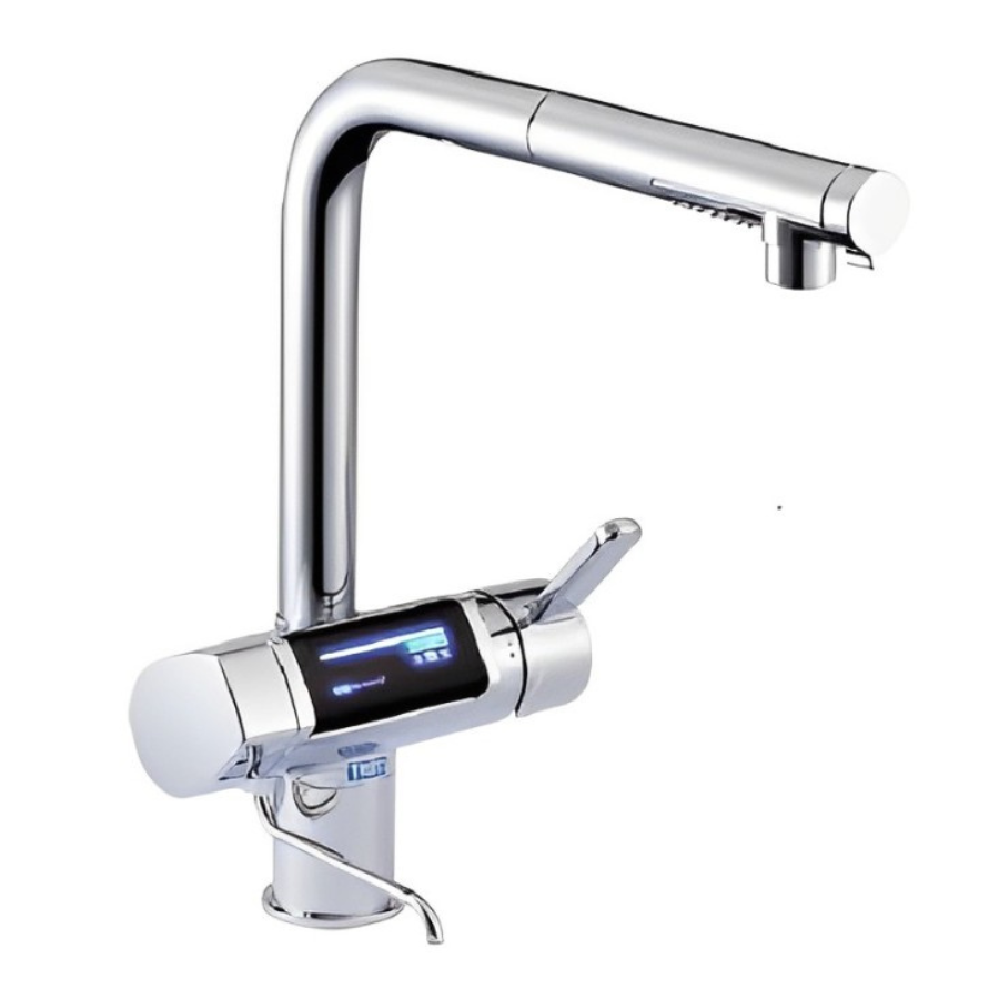 Máy có khả năng tạo ra 4 loại nước: nước ion kiềm, nước axit, nước tinh khiết và nước nóng/lạnh, phục vụ cho nhiều mục đích khác nhau như uống, nấu ăn và chăm sóc da. Sự kết hợp này không chỉ giúp tiết kiệm thời gian mà còn nâng cao tính đa dạng trong việc sử dụng nước. Vòi sen cầm tay là một ưu điểm nổi bật, mang lại sự tiện lợi và đơn giản trong việc vệ sinh khu vực quanh bồn rửa. Điều này góp phần tạo ra trải nghiệm sử dụng nước trong gia đình trở nên linh hoạt và tiện ích hơn.