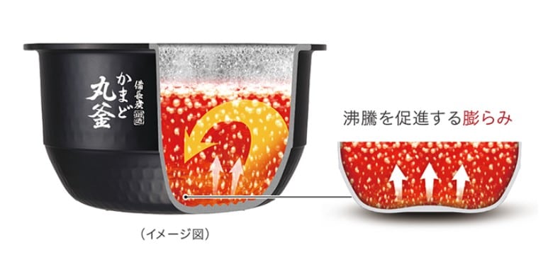 Nồi cơm nội địa Nhật làm nóng lõi với nhiệt lượng lớn 1420 W và làm cho các hạt đứng lên. Bằng cách nấu cơm cùng lúc ở nhiệt độ cao, nhiệt được truyền vào lõi của từng hạt gạo, tạo nên cơm dẻo.