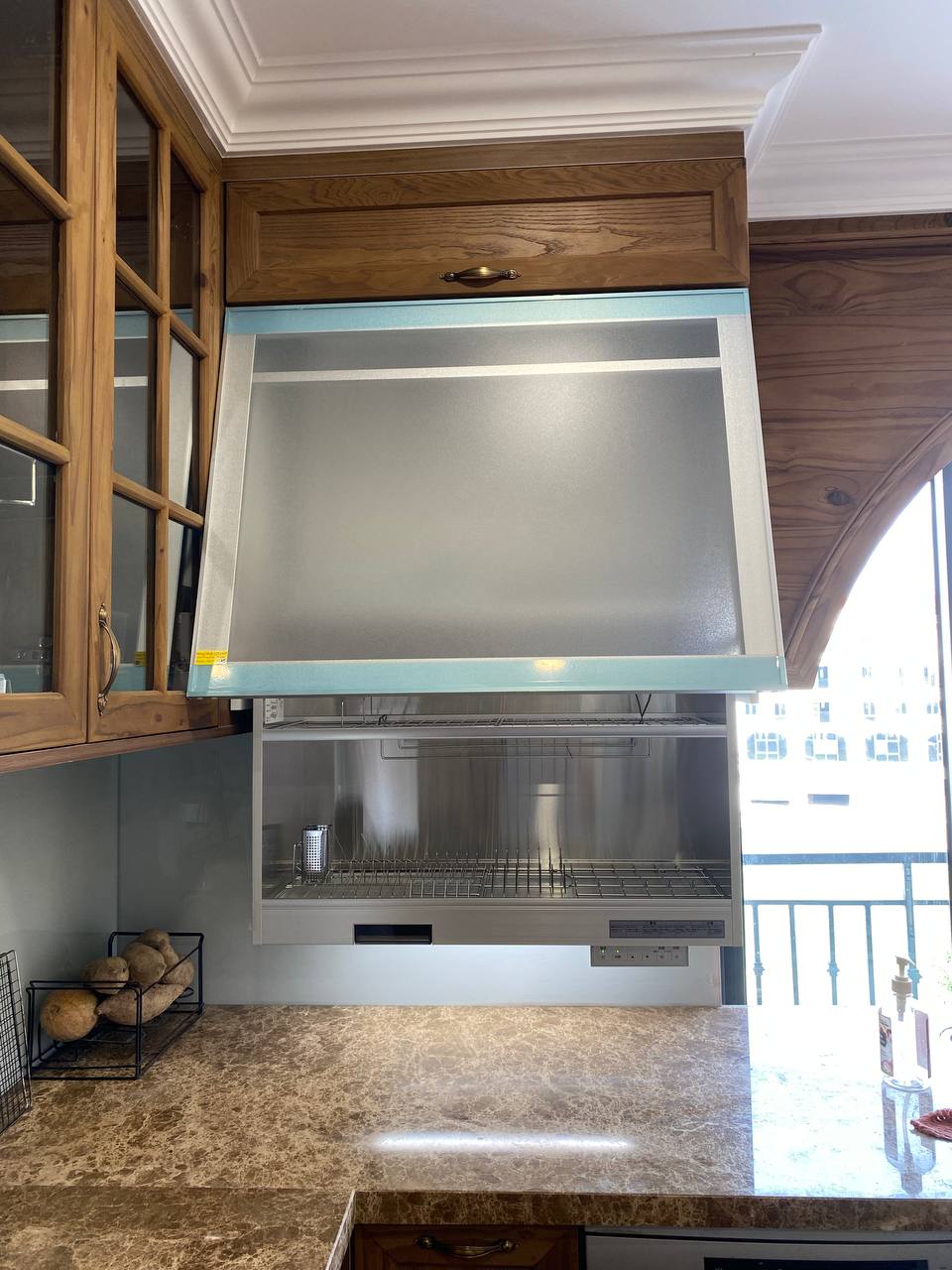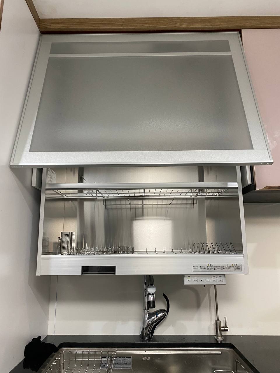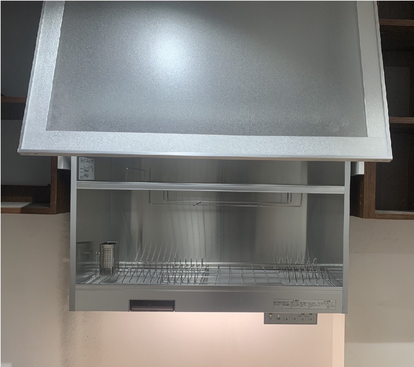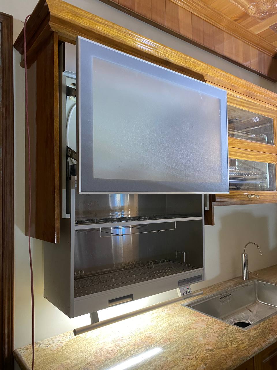 Tủ sấy bát nâng hạ này quá tiện luôn, tiết kiệm diện tích lại sấy bát đĩa khử khuẩn nữa