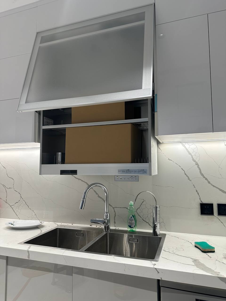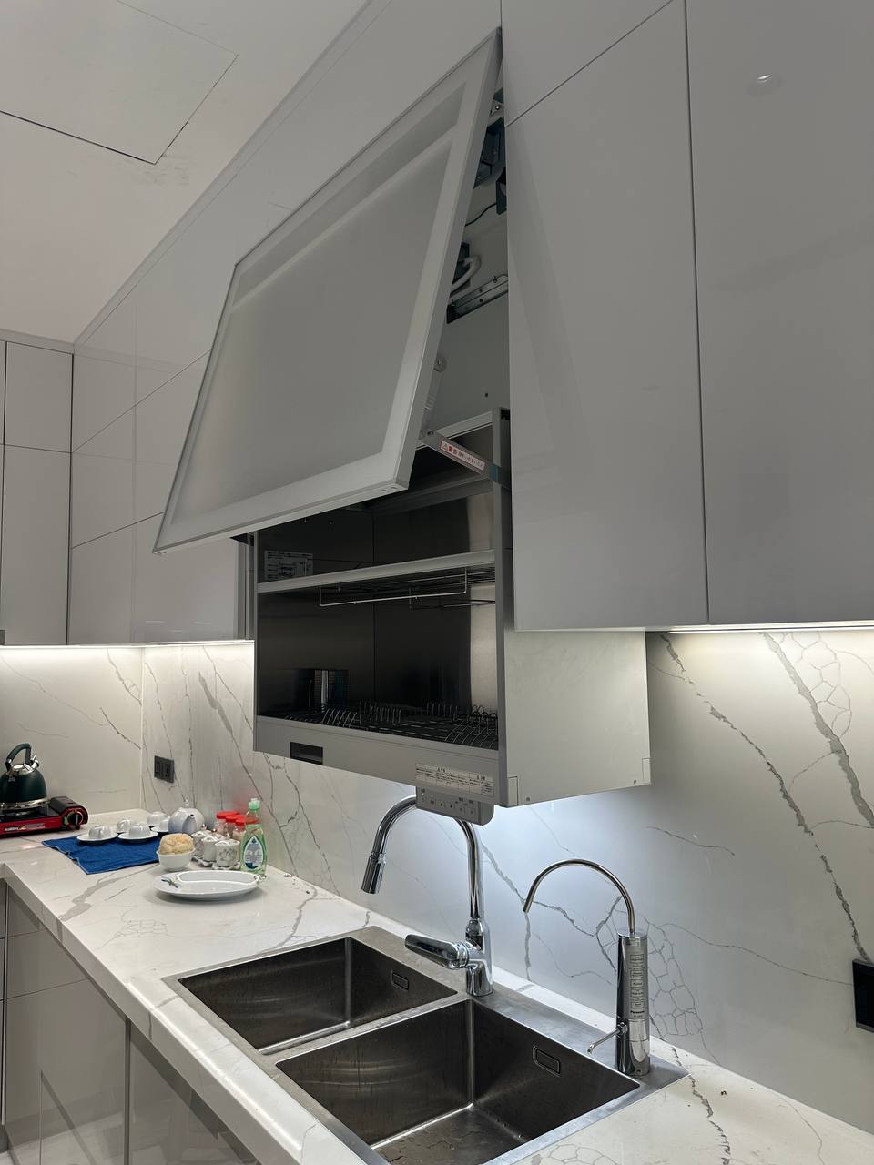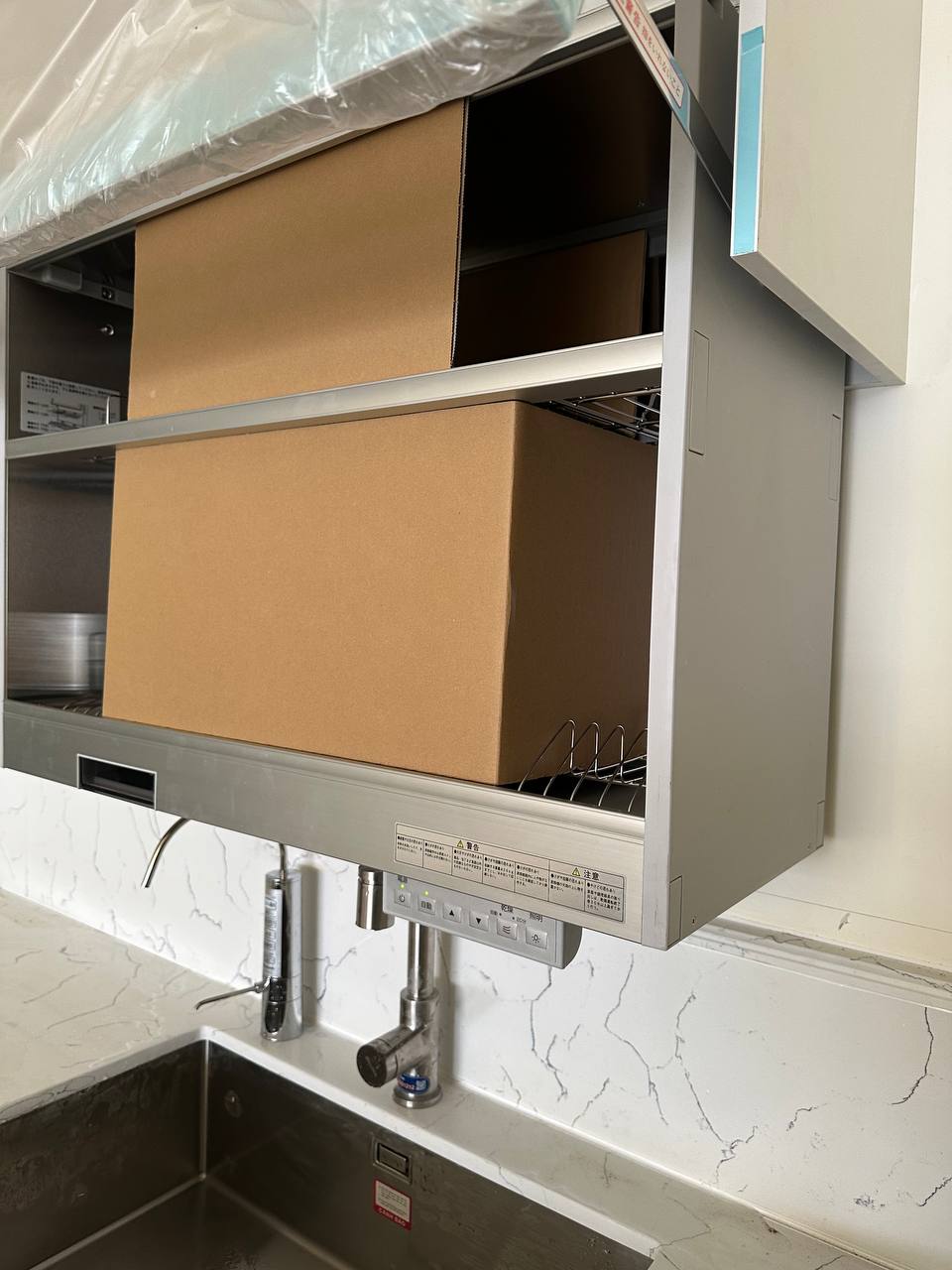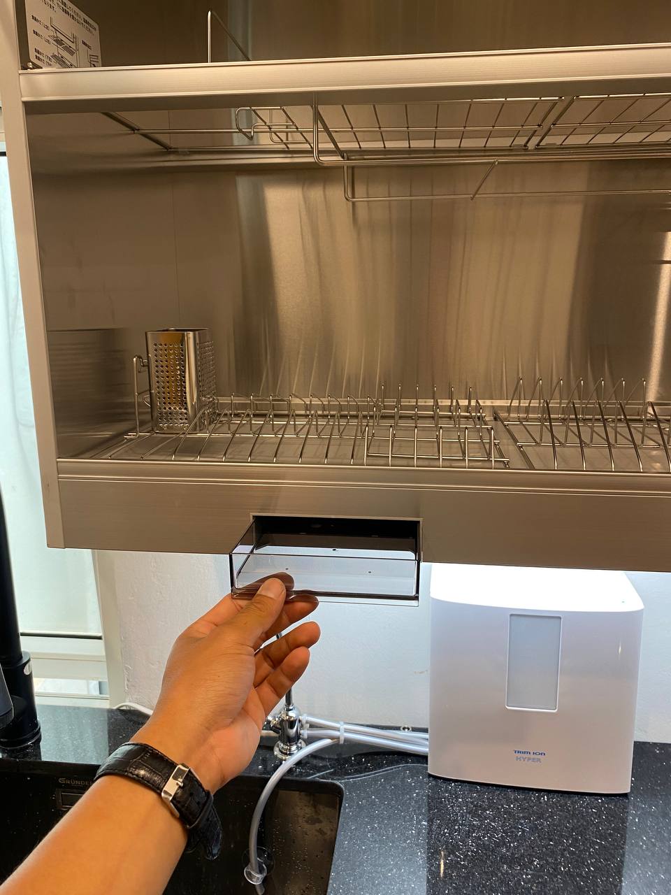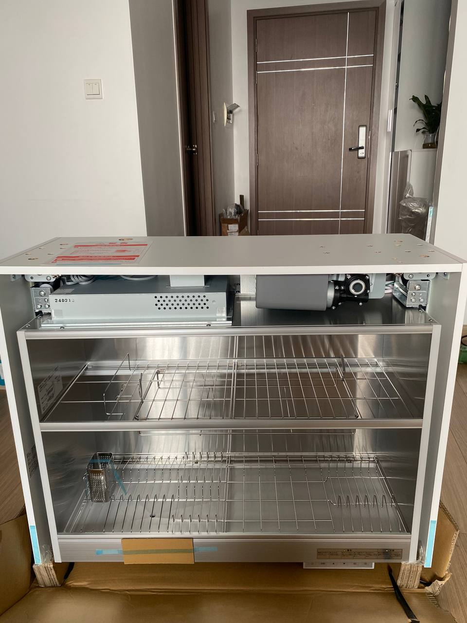 Tủ sấy bát nâng hạ này quá tiện luôn, tiết kiệm diện tích lại sấy bát đĩa khử khuẩn nữa