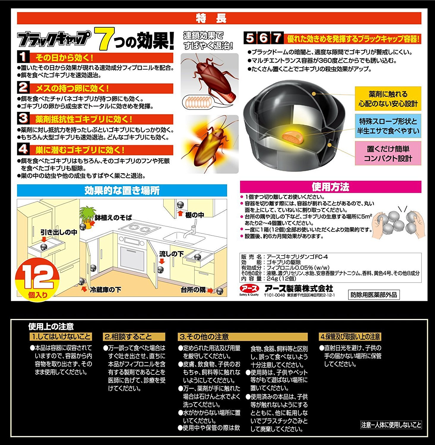 Viên diệt gián nội địa nhật bản viên màu đen hộp 12 viên. Sản phẩm là loại cực kỳ an toàn với tiêu chuẩn của Nhật với chức nang tỏa ra mùi hương dễ chịu để dụ gián ăn, khi đó con gián chưa chết ngay tại chỗ mà sẽ lây nhiễm sang các con khác và làm chết cả tổ (tiêu diệt cả trứng và ổ)